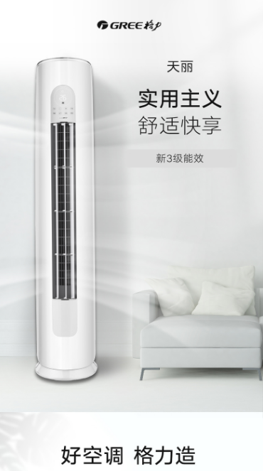 天丽 3匹 新三级能效 变频冷暖 柜机 高温自洁 五档风速