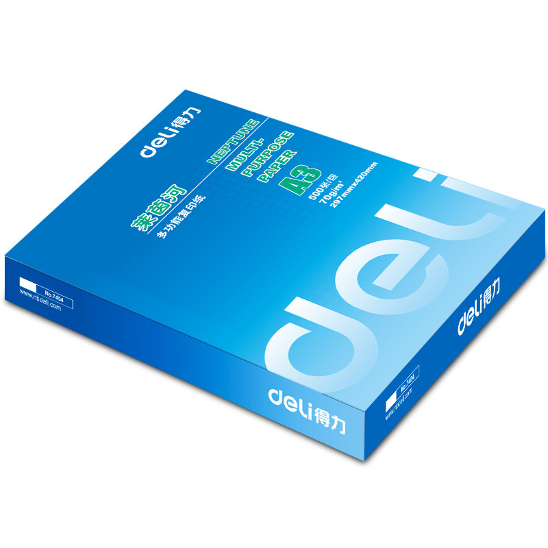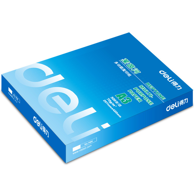 • 商品名称:得力(deli) 7404 A3 莱茵河复印纸 70g 500张/包 单包装