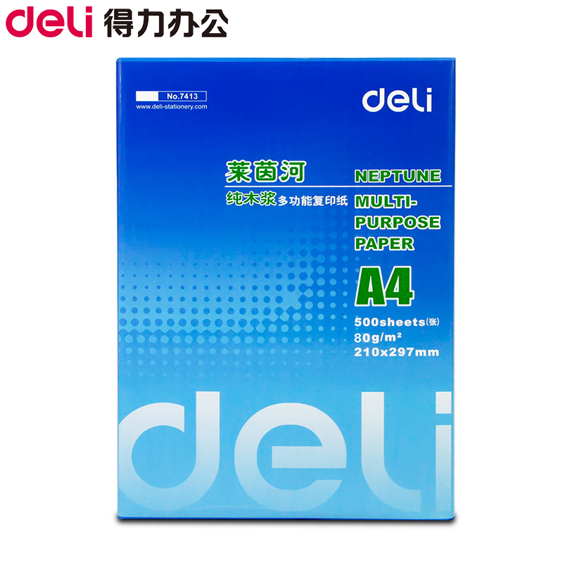 • 商品名称:得力(deli) 7413 A4 莱茵河复印纸 80g 500张/包 单包装