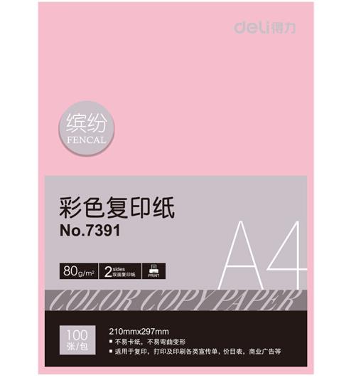 • 商品名称:得力(deli) 7391A4 浅红色彩色复印纸 80g 100张/包 单包装